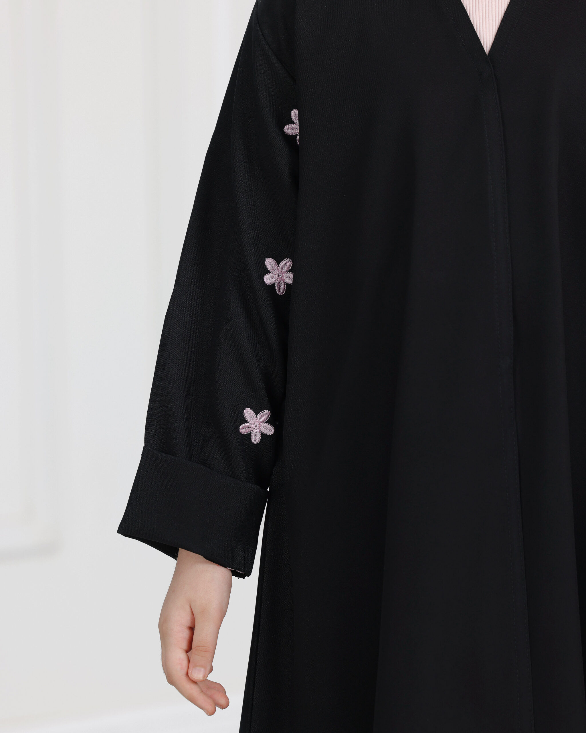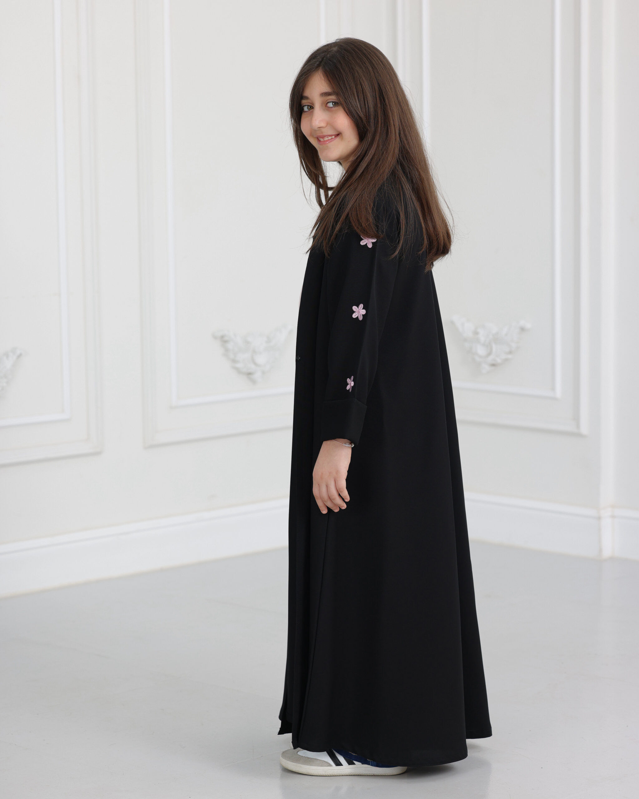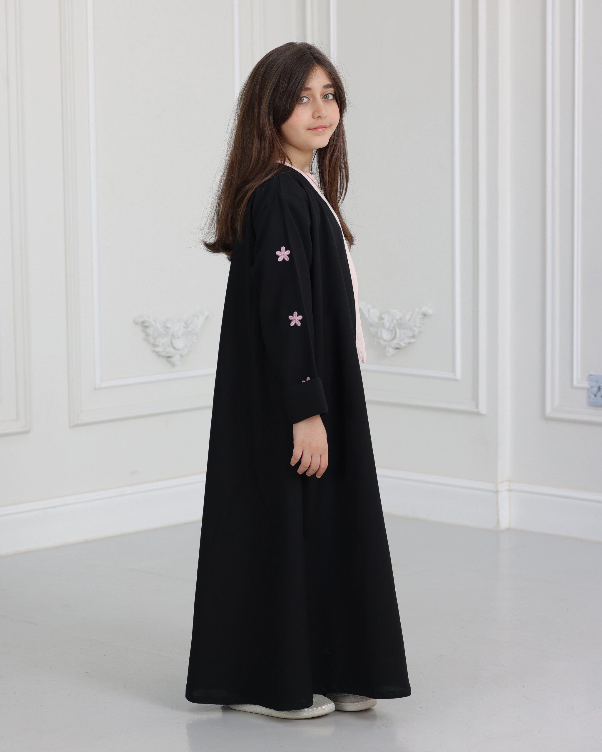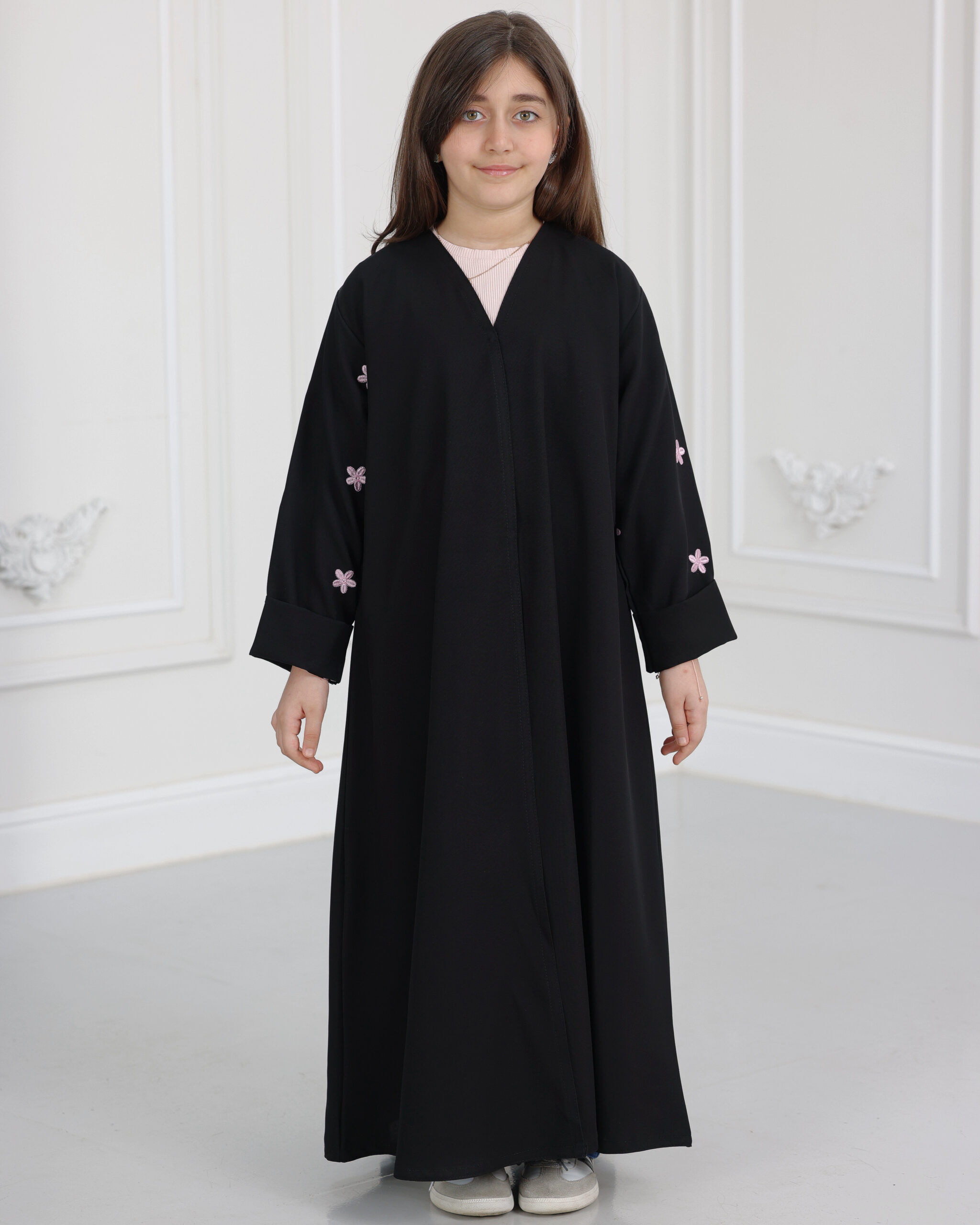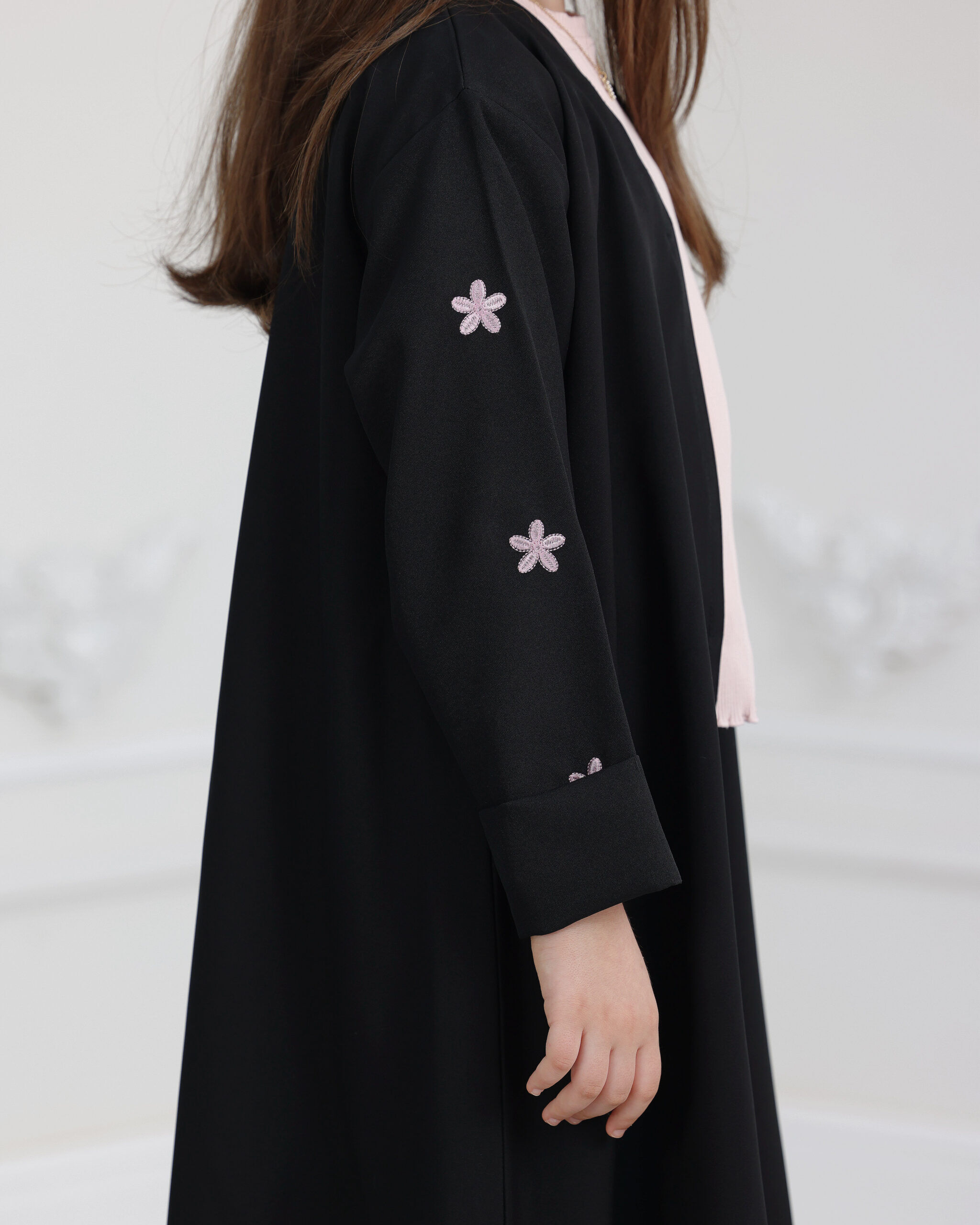 عباية بناتي مطرزة بورود وردي على اكمام :