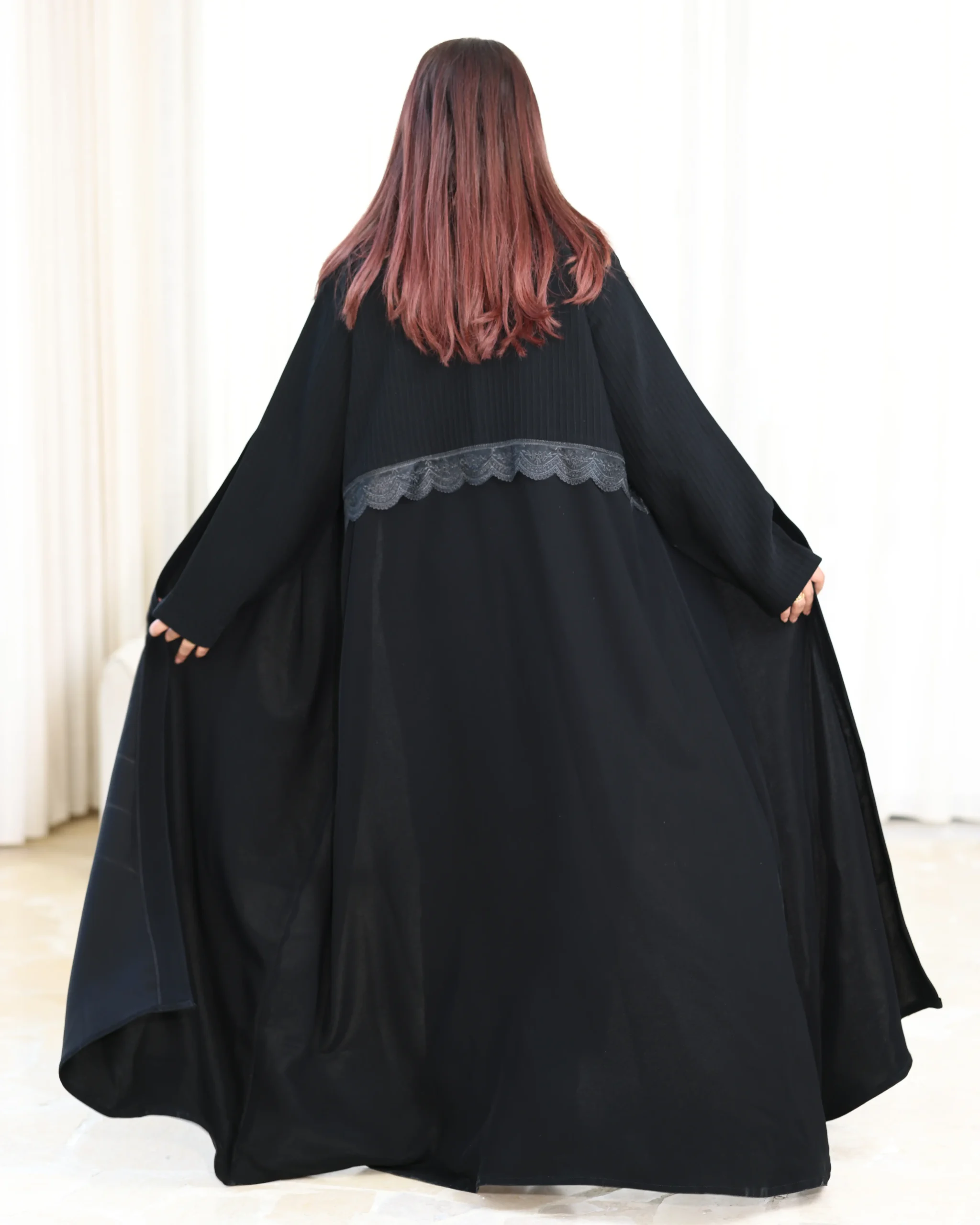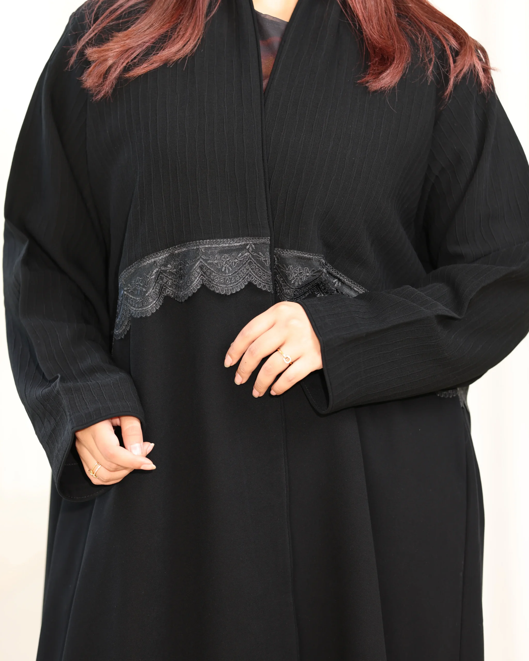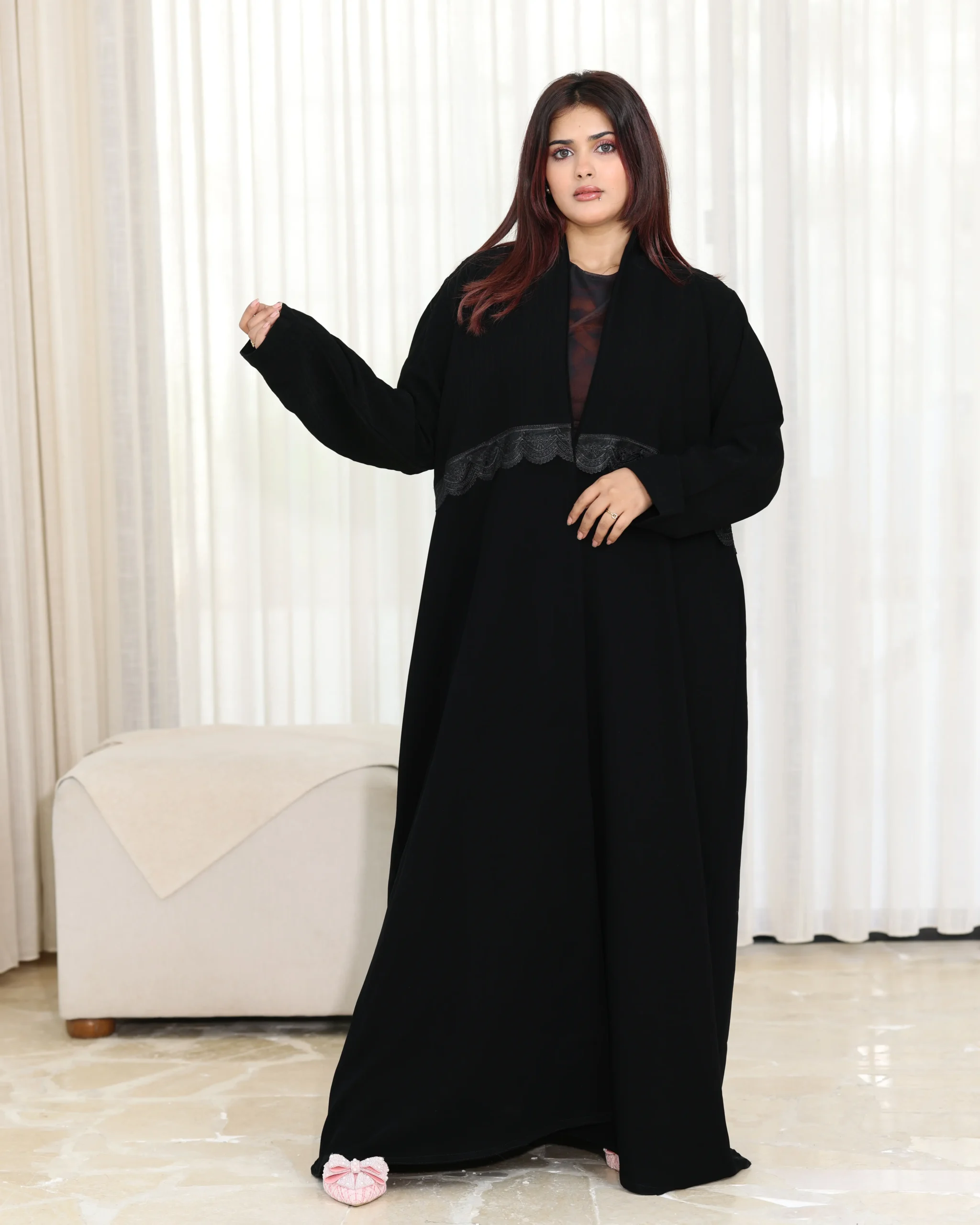 عباية بطبقة داخلية مع ربطة جانبية بكم جلد مفتوحة