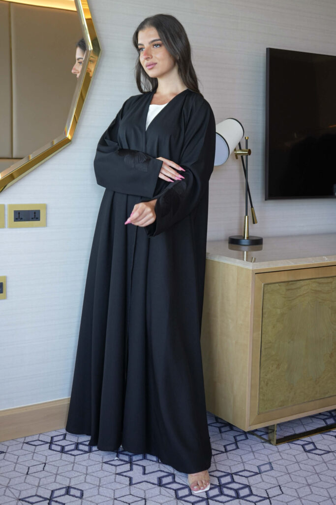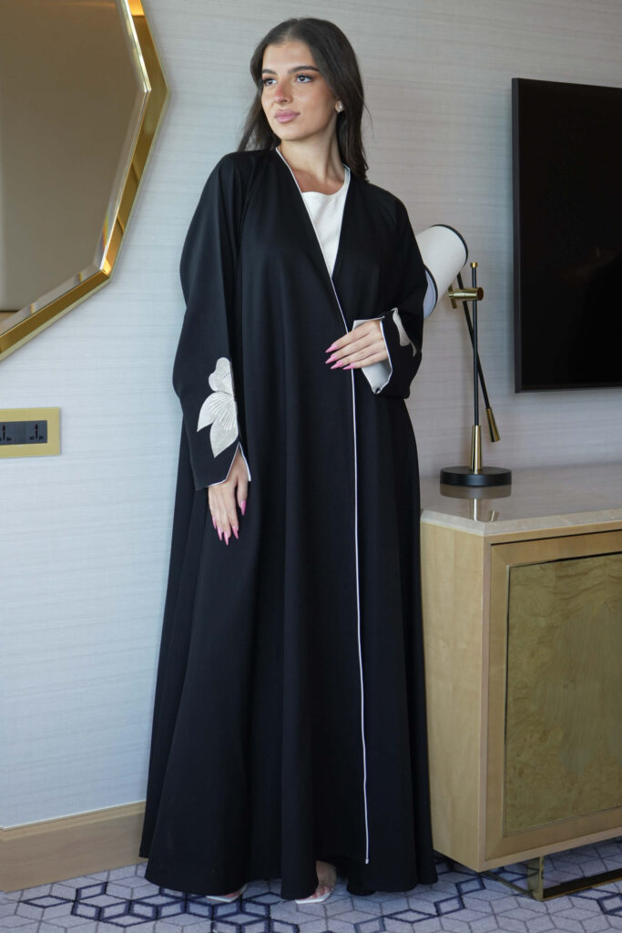 عباية ورد أسود مطرز بشك مخفي على اكمام